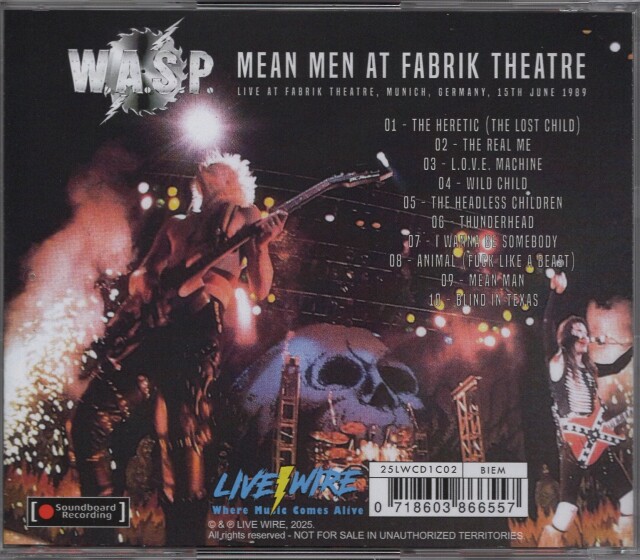 W.A.S.P. (US) / Mean Men At Fabrik Theatre (collector's item)